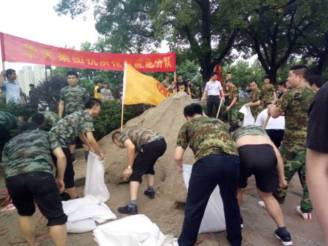 华天集团组织了100人抗洪抢险突击队,由董事长蒋利亚亲自带队,参与湘江江堤的抗洪抢险。