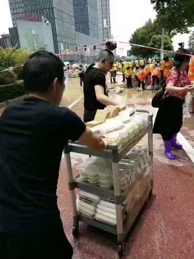 碧桂园凤凰酒店、明城国际大酒店、天成国际大酒店、星沙华天大酒店、三景韦尔斯利、秦皇食府等等为抗洪救灾的勇士保障食物供给。