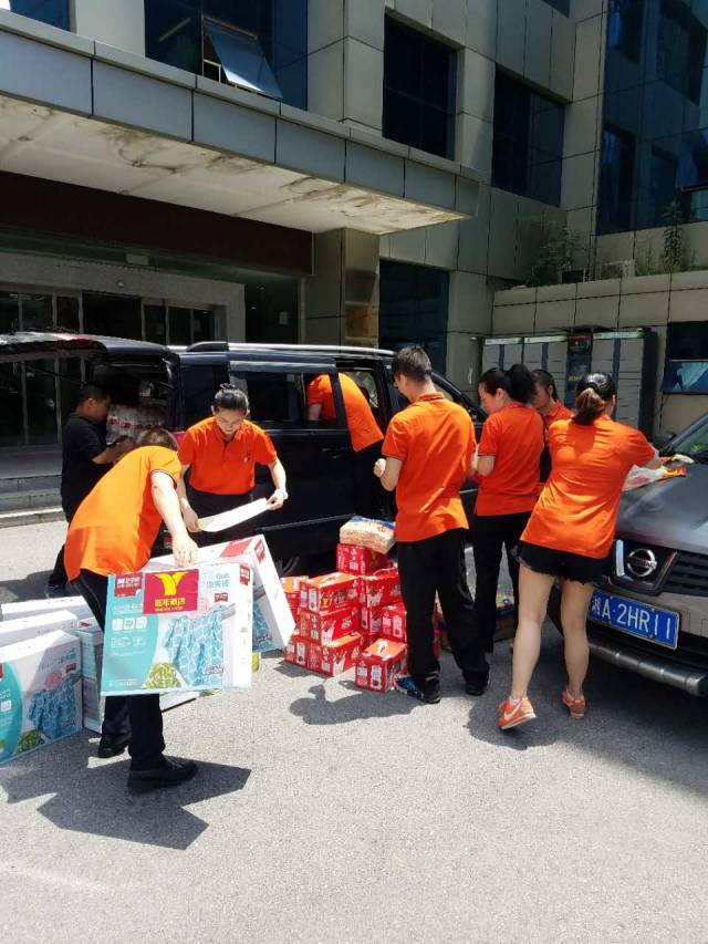 今天是延年世纪酒店6周岁生日,酒店全体伙伴们放弃给自己酒店庆祝生日,积极响应抗洪救灾大行动,为抗洪大堤上的一线抗洪救灾志愿者赠送爱心盒饭、为受灾群众赠送爱心物资。