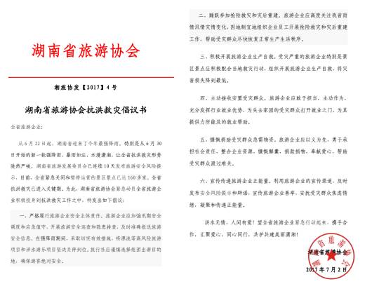 附上湖南省旅游协会的倡议书全文,希望您也能加入到抢险救灾工作中来,为守护我们的美丽家园贡献力量!