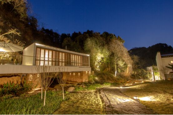 自在平江酒店特有的“简约徽派”风格与山水融合在一起,每一栋别墅都依山而建,就地取材,在不破坏原生态的基础上进行人性化的改造,这就是“野于外,奢于内”的理念。白墙青瓦,木质门框,铜锁小院,青石苔藓是外观的精简,素色家具,炉火煮茶,四面通亮是舒适的内设。仔细留意,会发现墙壁上特意开设的玻璃窗映着屋外的动态景色,树在风中轻轻摇摆,欣赏这样的景观,比赏任何名家字画都要有味。