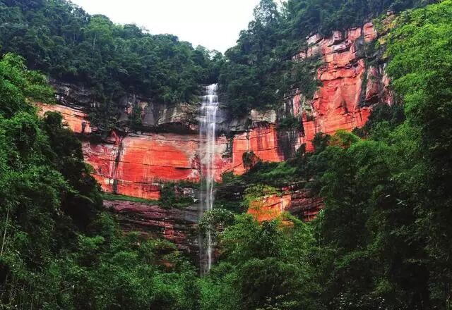 来红石野谷,有两点不容错过:一是地处一条山沟里的多级瀑布景观。三人行瀑布、攀岩瀑布、百叠泉瀑布、织女瀑布等;二是被人称为最美的丹霞景观,“丹霞壁画石刻长廊”的岩壁上的红色岩石夹杂着黑色的墨线,犹如一幅水墨壁画;而岩壁上的则是红得无一点杂质的岩石。