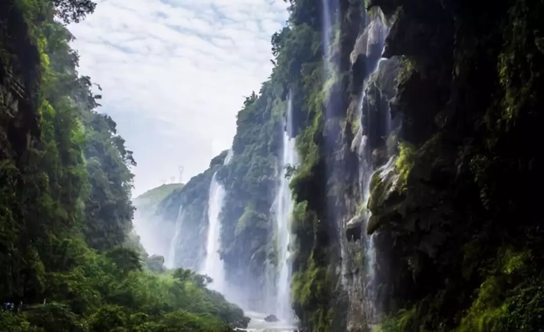 马岭河峡谷素有“地球上一道美丽的伤疤”之称,站在谷底向天空望去,云贵高原岩溶地貌的典型特征展露无遗:既有峰丛、石林、瀑布群,又有翠竹倒挂,溶洞相连,一步一景,真可谓“造化钟神秀”。几十条瀑布坠落人间,激越的如龙吟虎啸,万马奔腾;婉约的似风摆柳条,鱼戏莲田。