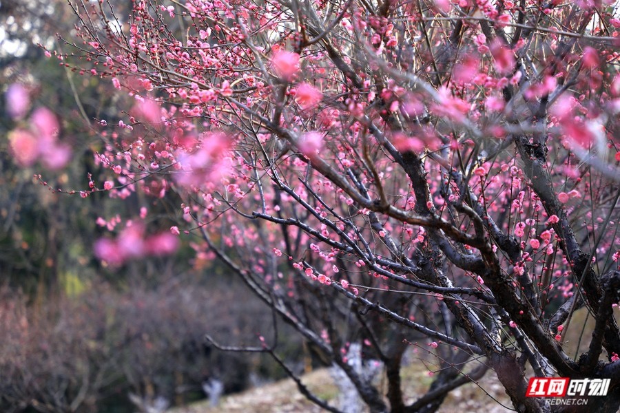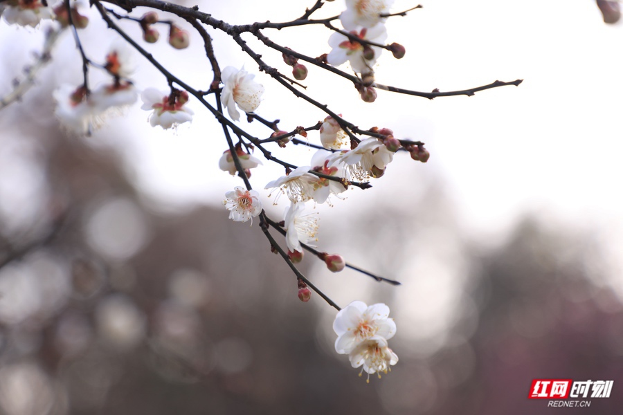 湖南省植物园梅花园内,30多个品种的400余株梅花陆续开放。