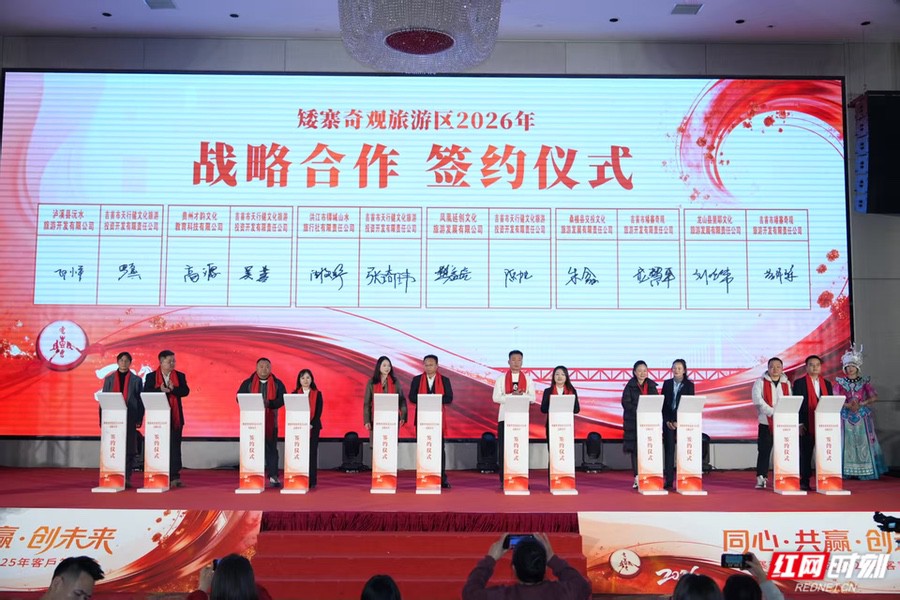 矮寨奇观旅游区与多家旅行社、研学机构签订2026年度合作协议。