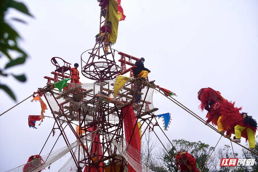 赵城狮舞高空表演。
