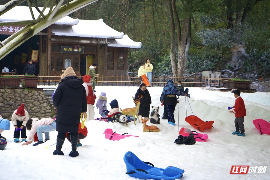 元旦假期,石燕湖景区推出“石燕湖童话雪乡”嬉雪乐园。