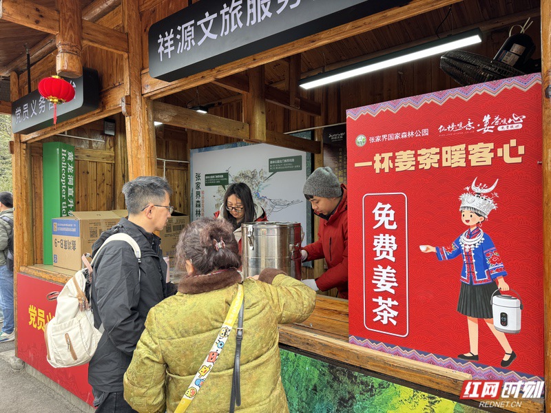 红网时刻新闻2月19日讯(记者 何超 通讯员 张洪涛)2月19日大年初三,张家界国家森林公园一大早就热闹起来了。天还没亮透,门票站的工作人员已经到岗,端着热气腾腾的姜茶迎接第一批游客。“没想到这么早进来还能喝到热茶,心里一下子暖和了!”一位来自广东的游客笑着说。这个春节,张家界不仅有好山好水,更有暖心服务。