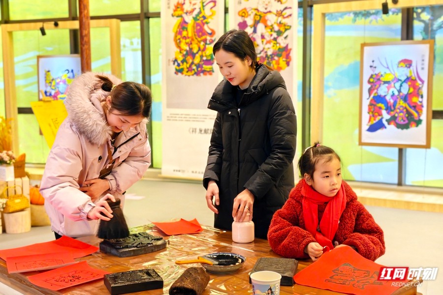 “手作市集”则让体验延伸到指尖,游客可尝试稻秆编织、古法米食制作。2月1日-3月3日试运营期间,该项目携手国家级非遗代表性传承人及隆回县非遗保护中心,特别推出“福马迎新——2026滩头木版年画展”,游客不仅能欣赏数百幅精品年画,还可在互动区亲手拓印,制作独特的非遗纪念品。