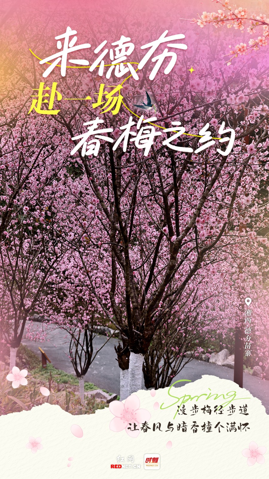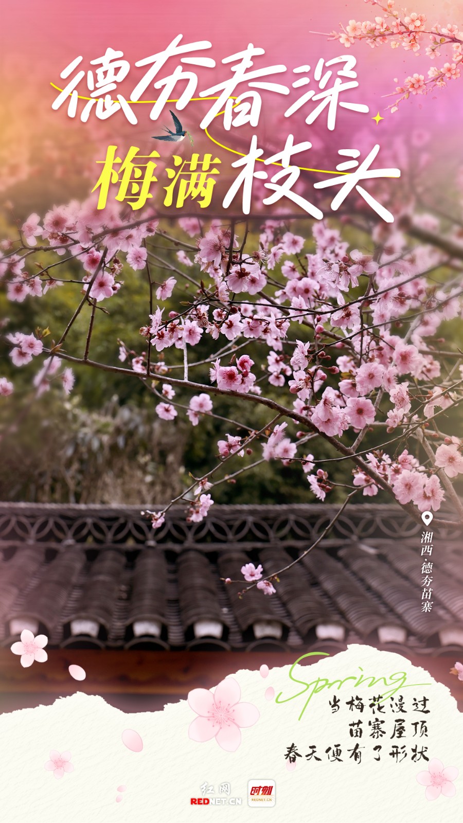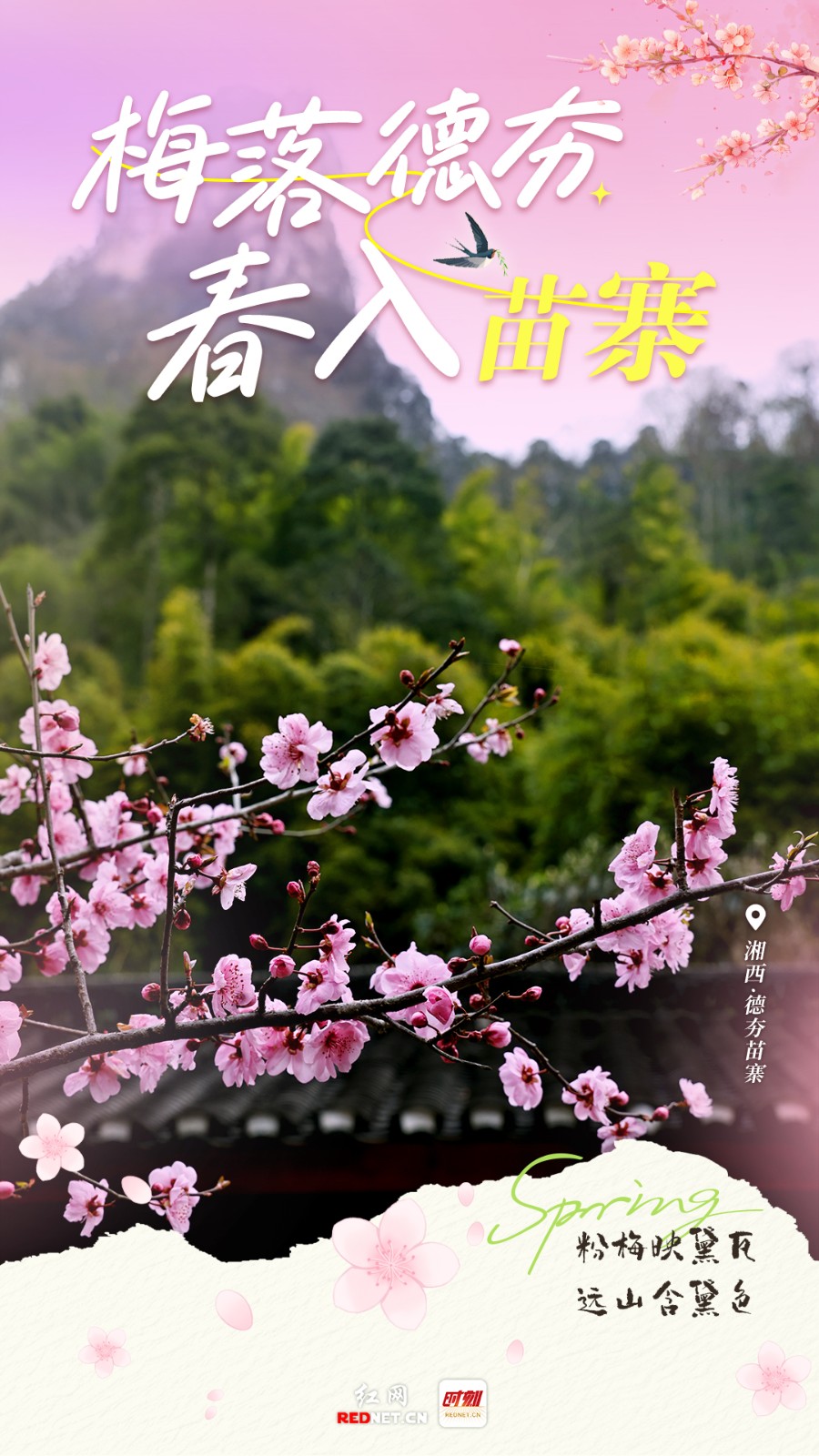 红网时刻新闻3月10日讯(记者 何超 海报设计 庄程)当粉梅漫过德夯苗寨的青瓦屋顶,湘西的早春便有了最清雅的模样。近日,吉首德夯苗寨的梅花进入盛花期,满枝粉梅与峡谷远山、苗寨风情交织,绘就一幅早春盛景图,也向八方游客发出邀约,共赴这场梅开德夯的早春之约。