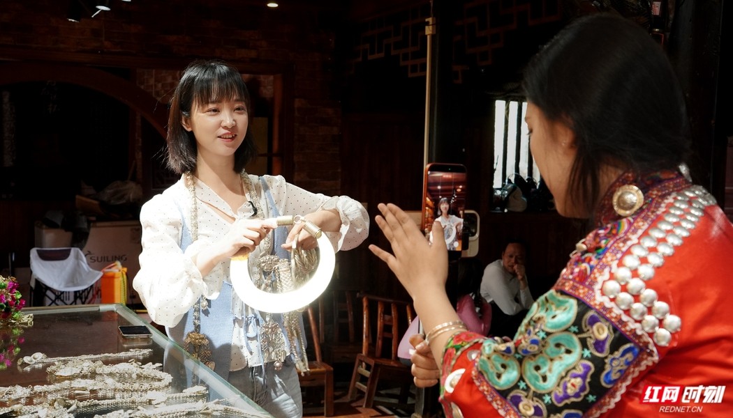 课程形成“理论赋能—实景创作—精品打磨”闭环,首日校园授课围绕文旅新媒体策划、民俗讲解等专题展开;随后两日,师生团队赴凤凰县山江镇老家寨、三月三“边边场”等民俗活动现场,在导师和媒体记者共同指导下,完成选题、拍摄、剪辑到发布的短视频全流程实操,深度聚焦苗绣、银饰、赶边边场等非遗项目。