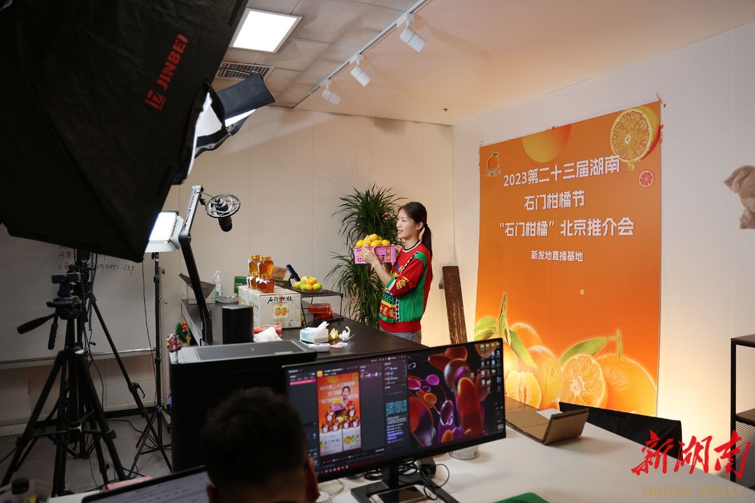 北京新发地农产品批发市场现为北京交易规模最大的农产品专业批发市场。此次推介会采用线上、线下同步进行的方式,线下举办推介会,产品看得见、摸得着;线上通过新发地直播基地举办石门柑橘直播专场,进一步拓宽销售渠道,依托新发地走向全国。