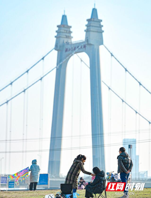 不少市民就近在湘江沿江风光带上