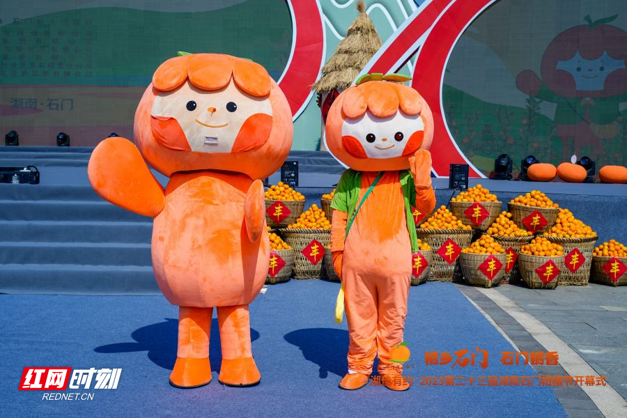 本次石门柑橘节的吉祥物“石门橘娃”。橘娃采用石门柑橘四色进行设计,依据果实生长发育的不同时期选取绿色、淡黄色、橙黄色、橙红色四色进行搭配。