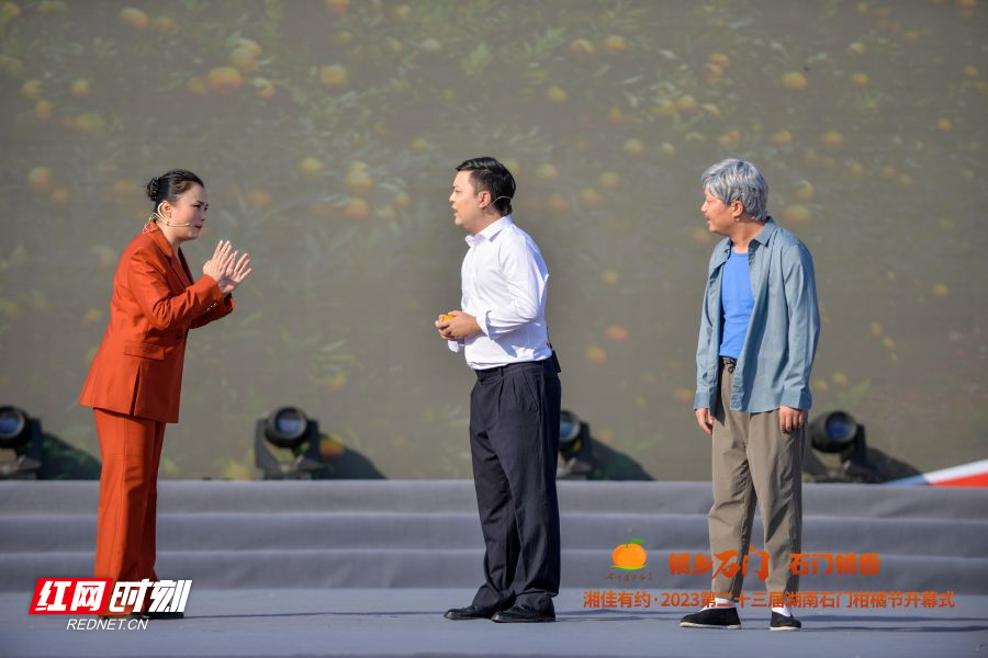 杨珊珊、龙代雄、屈子凡倾情演绎情景小品《石门橘子红了》。