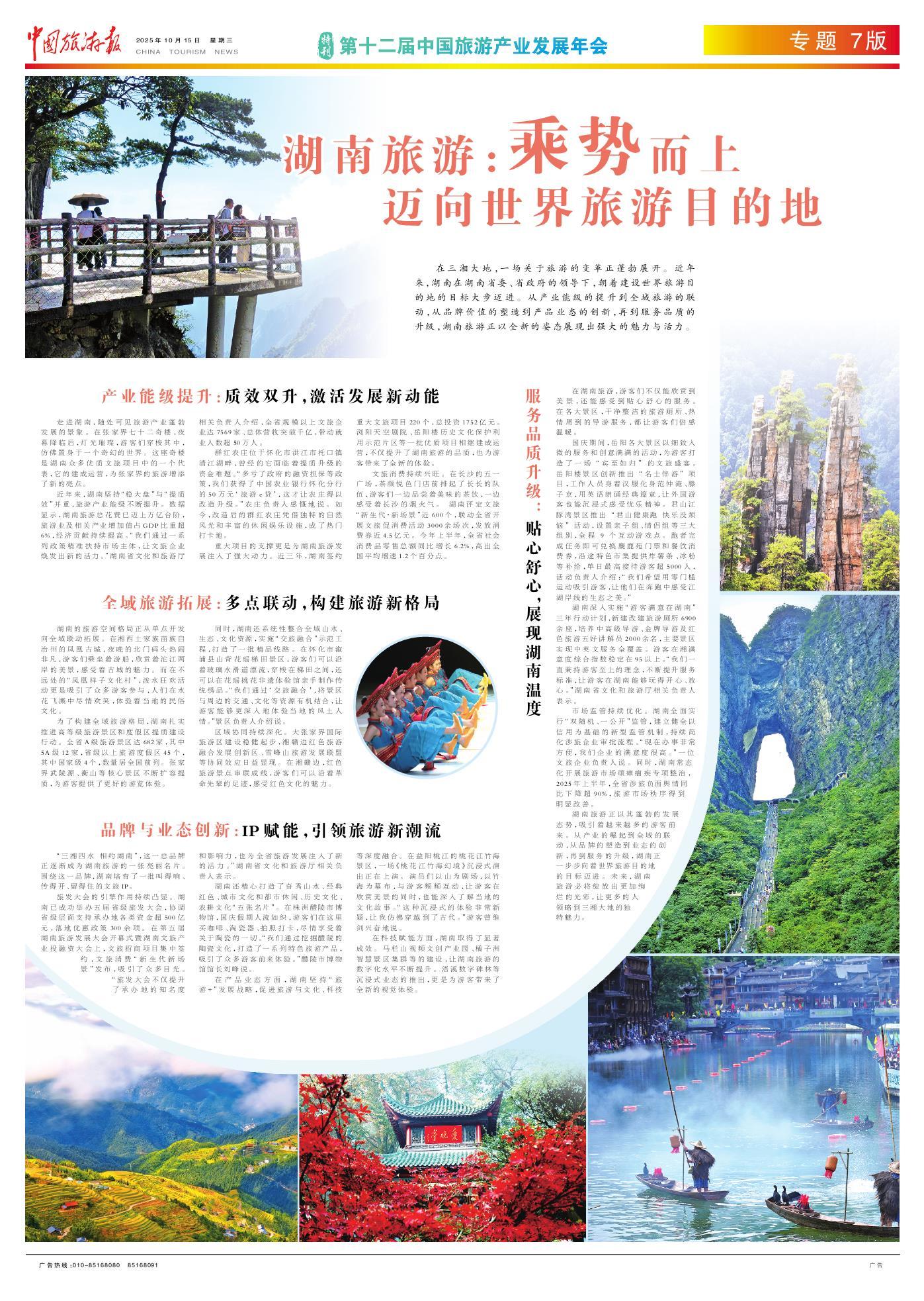在三湘大地,一场关于旅游的变革正蓬勃展开。近年来,湖南在湖南省委、省政府的领导下,朝着建设世界旅游目的地的目标大步迈进。从产业能级的提升到全域旅游的联动,从品牌价值的塑造到产品业态的创新,再到服务品质的升级,湖南旅游正以全新的姿态展现出强大的魅力与活力。