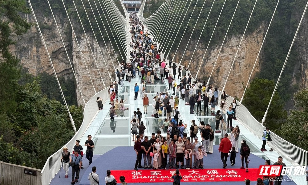 国庆假期,张家界大峡谷景区通过线上实名预约、分时段入园等方式,有效控制景区内人流密度。何思璇/摄
