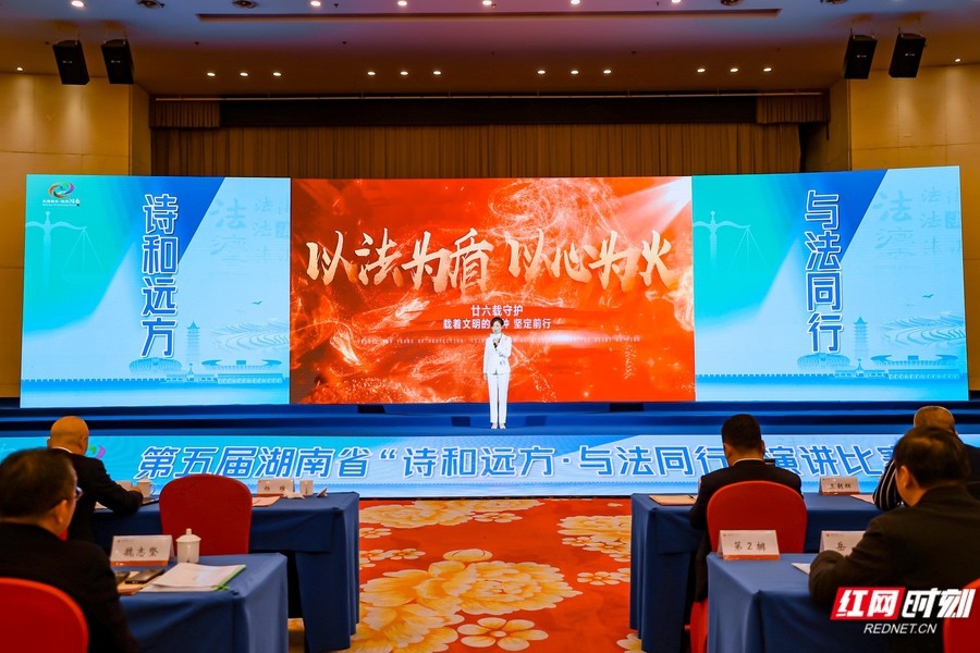 12月5日,第五届湖南省“诗和远方·与法同行”演讲比赛在娄底举行。