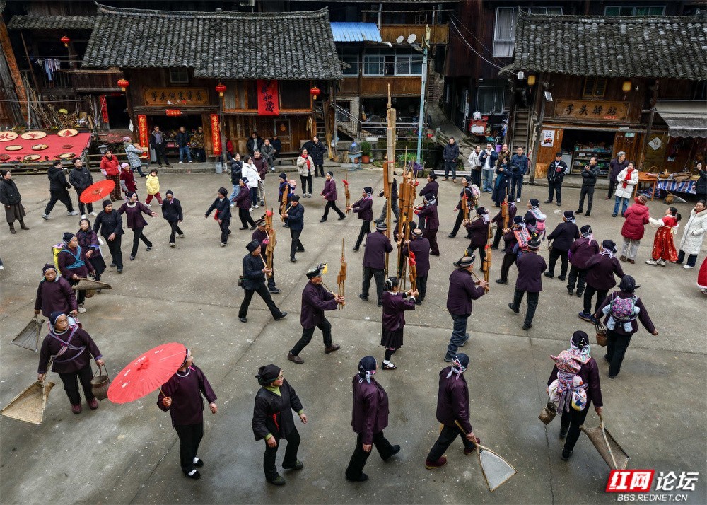 怀化市通道侗族自治县双江镇芋头古侗寨迎来了延续数百年的新春盛事——闹春牛。