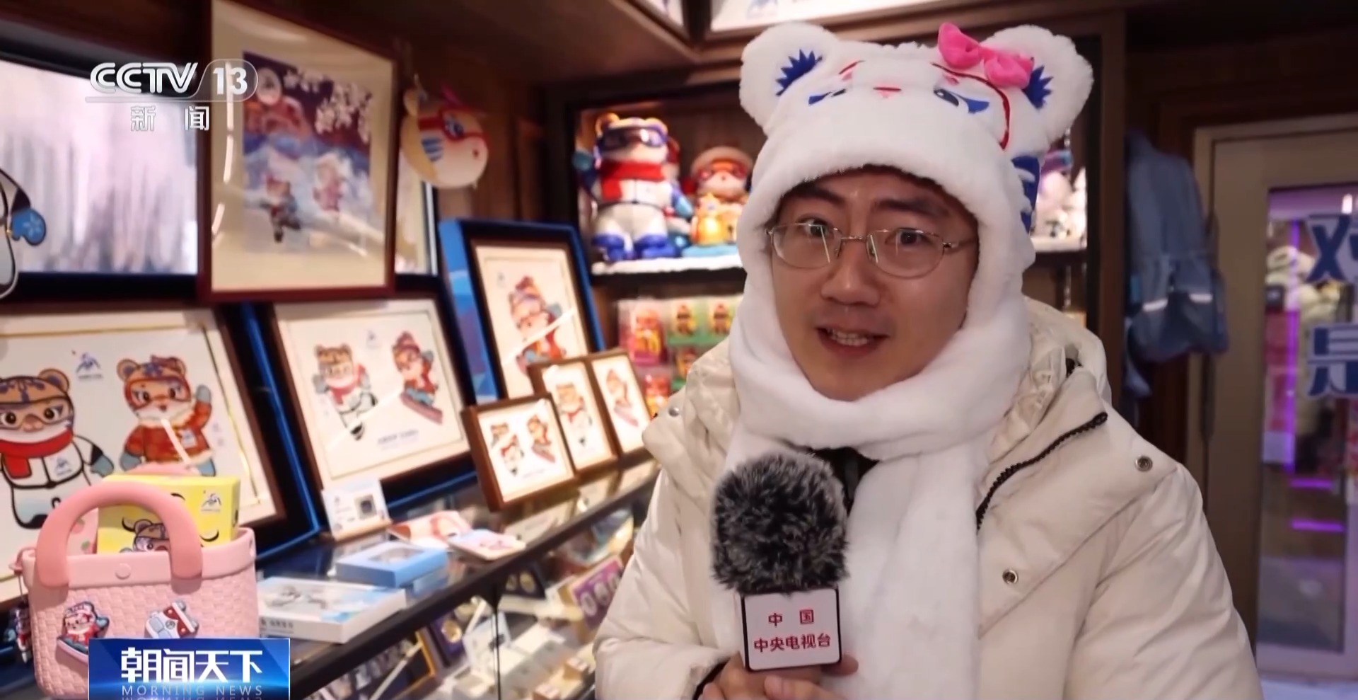 总台记者 张程:我发现第九届亚冬会的文创产品有两个特点,第一就是完美地嵌入到我们的生活当中:比如说我现在头上戴的这顶妮妮图案的帽子,采用了石墨烯加热技术,保证你在户外也能够抵御“尔滨”的严寒。